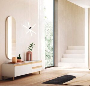Algo que también es muy importante, que haya suficiente iluminación para que se vea acogedor, un recibidor bien iluminado hace que entrar en casa sea mucho más agradable. Así que si con la luz que tenemos en el techo no fuera suficiente podemos poner una lampara de mesa en ese mueble o un aplique de pared, la cuestión es que esté bien iluminado